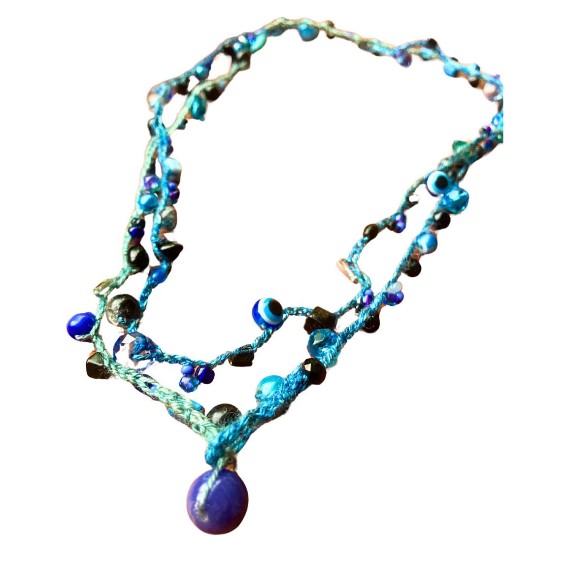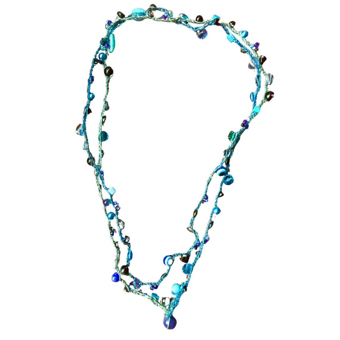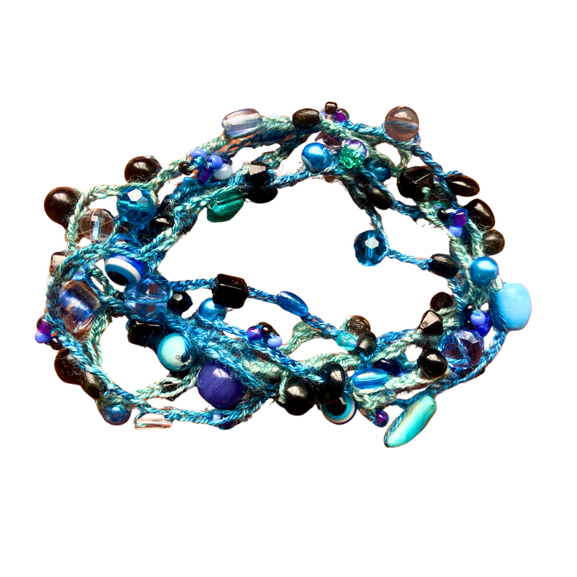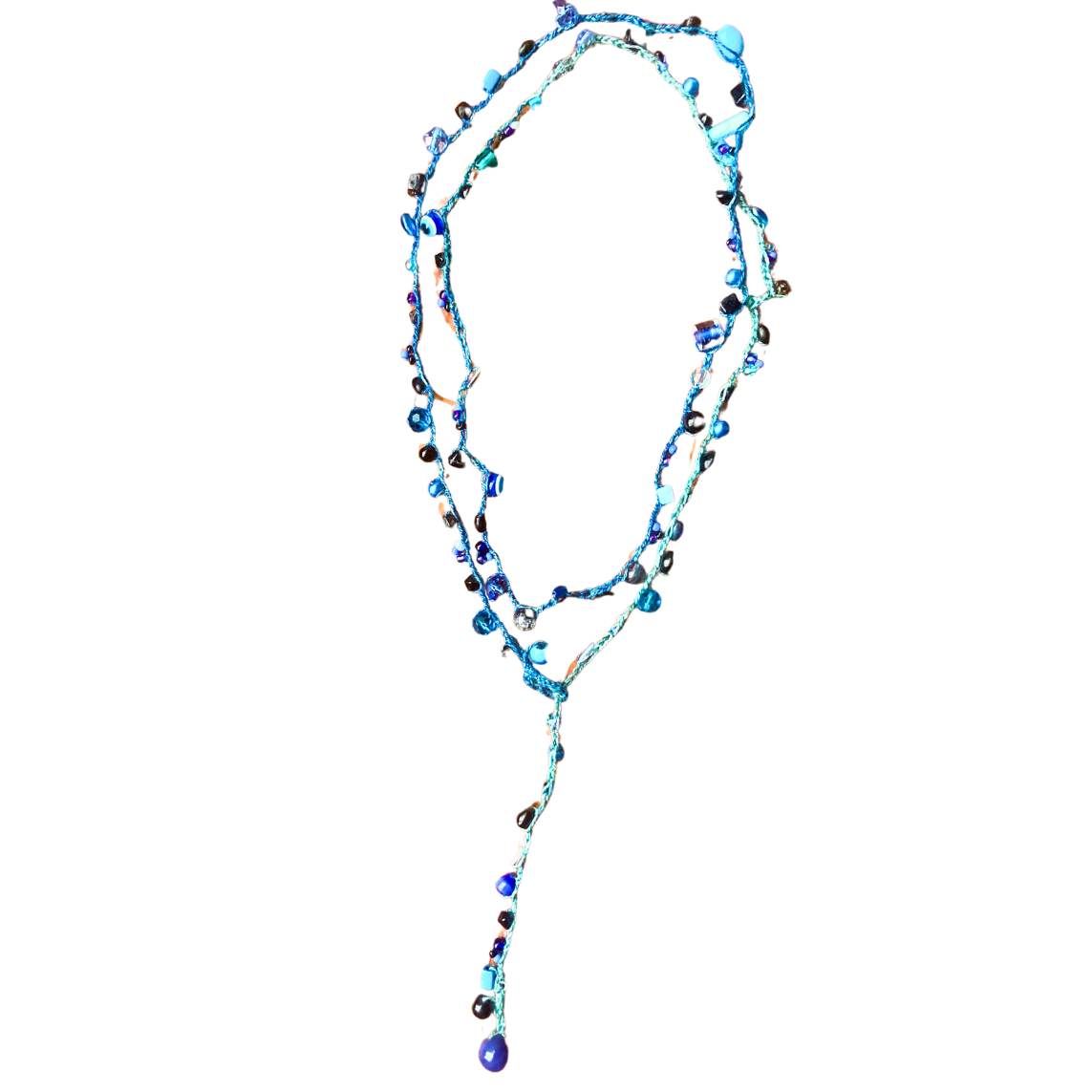 Met sy gewaagde skakerings van blou en swart krale, meng dit subtiliteit met uniekheid. Gereserveer maar onwrikbaar, hierdie stuk laat jou styl vir homself praat.
