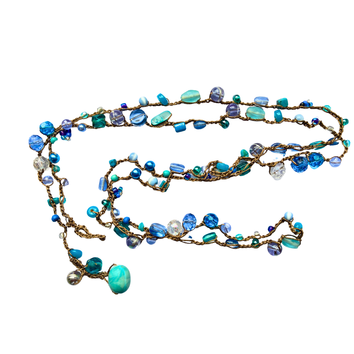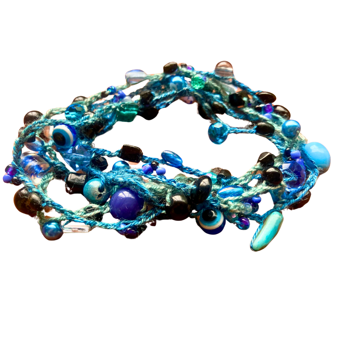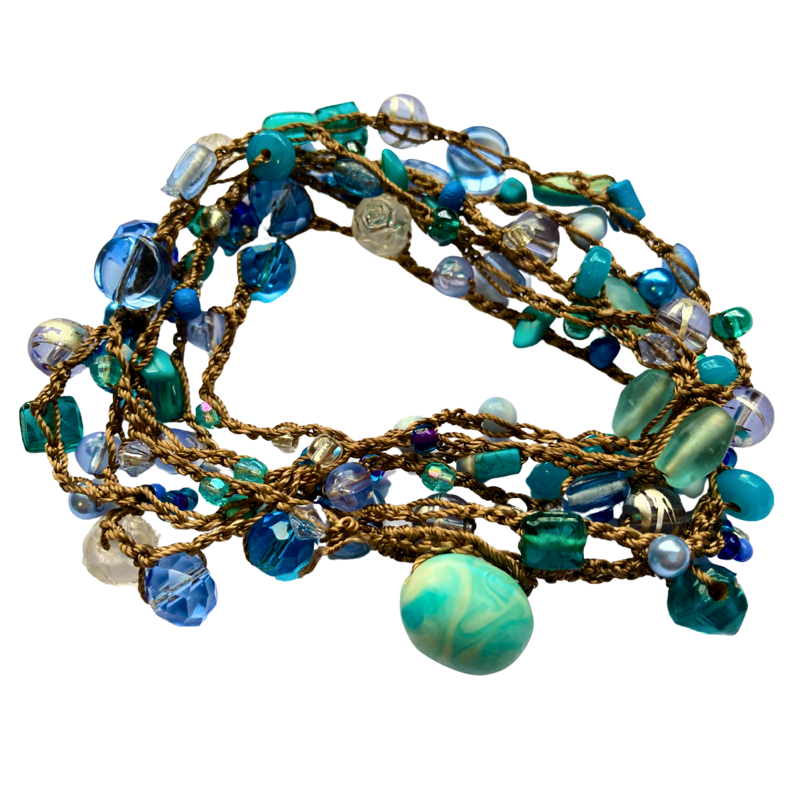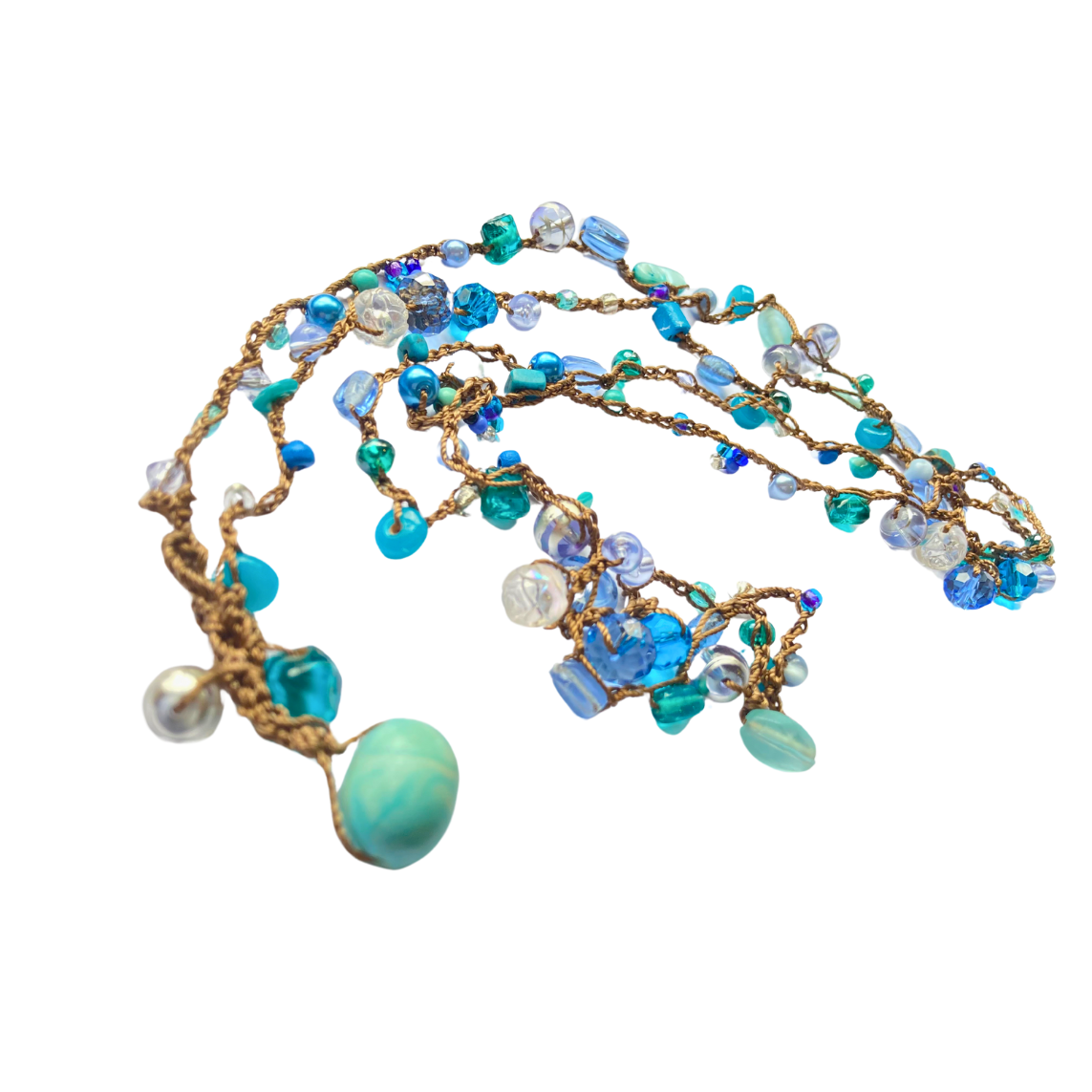 Met sy gewaagde skakerings van blou en swart krale, meng dit subtiliteit met uniekheid. Gereserveer maar onwrikbaar, hierdie stuk laat jou styl vir homself praat.